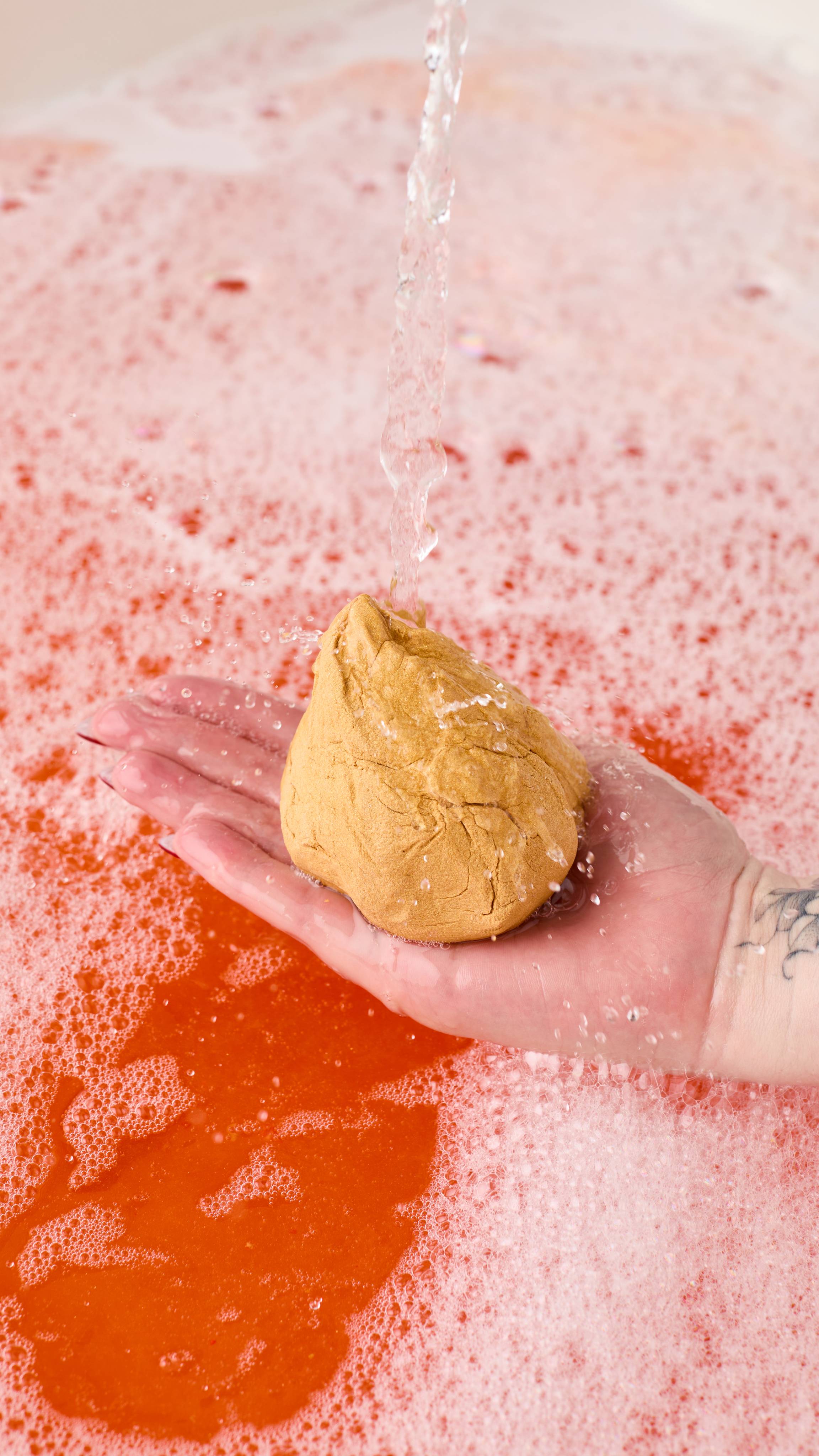– Inspired by beautiful Christmas cakes, the shape is made using muslin to help squeeze and twist the bubble bar when still wet to create the pointed tip. This is then sprayed with our plastic-free glitter to make it sparkle and shine.